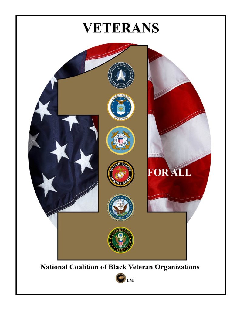 Veterans 1 For All is an evolution of the National Coalition of Black Veteran Organizations. The organization is a think tank that researches history, evaluates, and makes recommendations of policies that impact the services of Black people and other minorities in the defense of our nation.